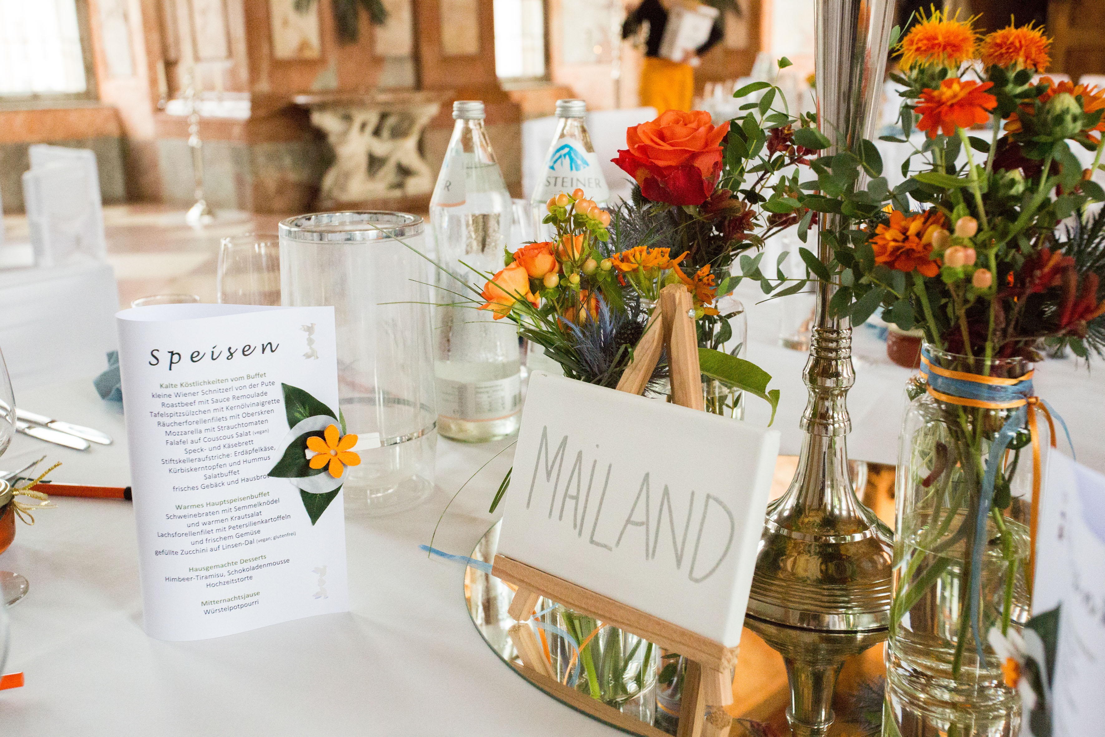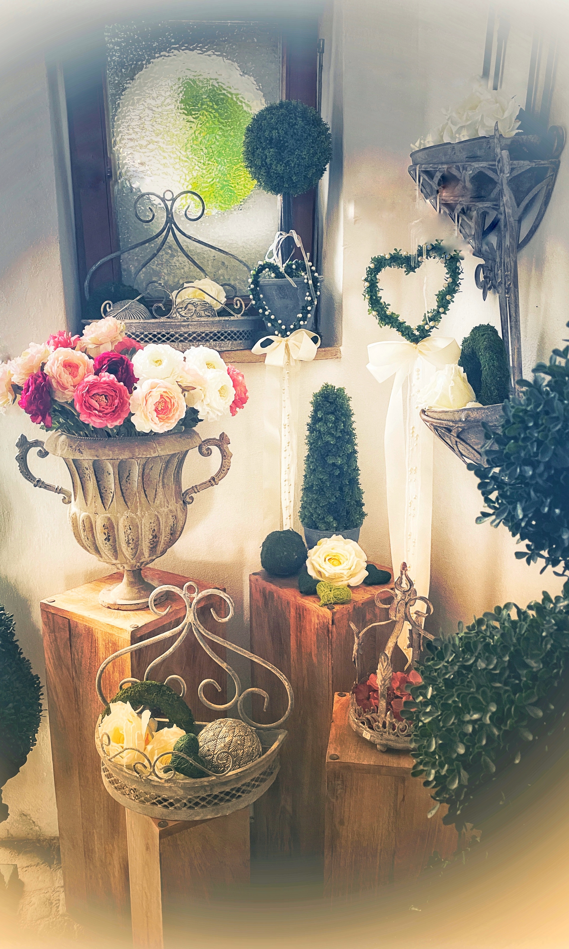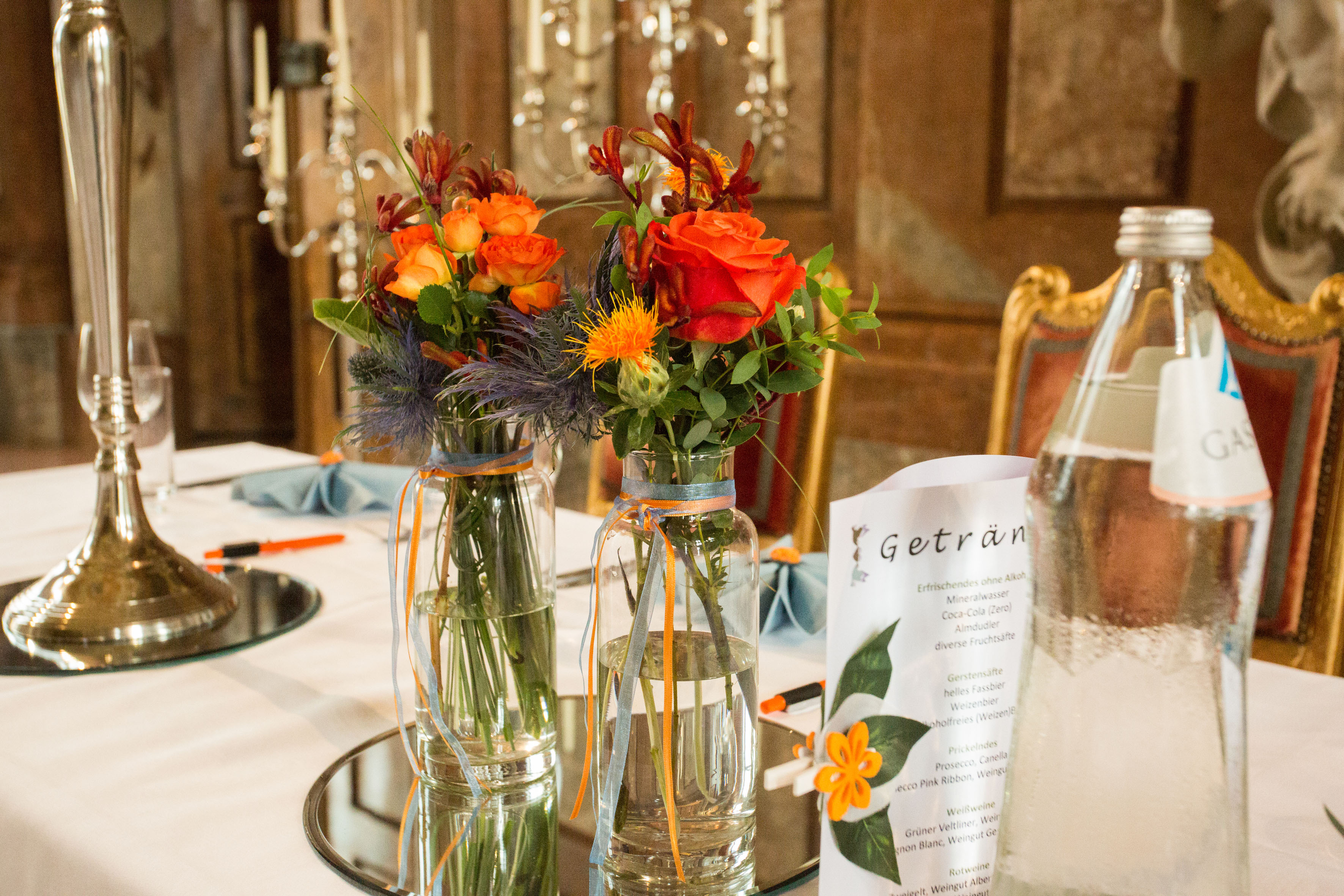 Stiftskirche St. Florian: „An Tagen wie diesen“, gespielt auf der Brucknerorgel, Hochzeitsfeier im Marmorsaal – es war das Fest unserer Liebe. Die Vorbereitungen dafür starteten bereits bei unserer standesamtlichen Trauung ein Jahr zuvor. Elemente wie Kirchenheft, Taschentücher, Seifenblasen, Menükarten oder Gastgeschenke hatten wir alles am Plan und zum Teil schon mit der Gestaltung begonnen. Dennoch entschlossen wir uns, einen Profi bzw. einen Deko-Verleih zuzuziehen, weil bei solch einer Location schnell mal ein Kerzenleuchter oder ein Blumenarrangement verloren wirken kann. Unsere Onlinerecherche brachte uns zu Gina Seemann. Schon bei unserem ersten Treffen waren wir überwältigt: Dekoelemente für alle Anlässe und alle Stilrichtungen – wir kamen aus dem Staunen gar nicht mehr raus. Hochwertigste Kunstblumen und Gräser aller Jahreszeiten, Kerzenleuchter von mini bis mannshoch, Vasen und Blumengefäße in allen möglichen Formen und Ausführungen, Etageren verschiedener Stilrichtungen, Spiegelelemente in unterschiedlichen Formen, aber auch Holzelemente, Geweihe … natürlich ebenso Stuhlhussen … Bänder und Schleifen in allen möglichen Farben und Größen… einfach UNGLAUBLICH. Wir waren fürs Erste mal überfordert. So fand die Besprechung hinsichtlich Raumstellung sowie die Bestellung der Blumenarrangements und des Brautstraußes mit Frau Seemann statt. Ihrer Liebe fürs Detail und ihrem Auge für das Schöne ist es zu verdanken, dass bei unserer Trauung auch die Liebe zu Pferden nicht zu übersehen war. Liebevoll dekorierte Hufeisen schmückten die Kirchenbänke und auf der Festtagstafel fanden sich stilvolle kleine goldene Pferdekutschen, die für die Echtblumenarrangements genutzt wurden. Auch der Weg von der Kirche zum Marmorsaal trug Frau Seemanns Handschrift … Kunstbuchsbäumchen, stilvolle Kerzenleuchter und beschriftete barocke Tafeln zeigten unseren Gästen den Weg … wir fühlten uns an diesem Tag wie Prinz und Prinzessin und auch unsere Gäste waren überwältigt und dankbar für die „Notfall-Picknickkörbe“ welche mit Flip-Flops, Haarbändern, Söckchen, Pflaster, etc. befüllt waren. Ein unvergessliches Fest, zu dem Frau Seemann mit ihrem enormen persönlichen Einsatz und ihrem Engagement viel beigetragen hat! Ihr stets offenes Ohr für Kundenwünsche, ihre freundliche Beratung, aber vor allem auch ihre Ausdauer zeichnen sie aus. Für all das an dieser Stelle nochmals ein herzliches DANKESCHÖN!
