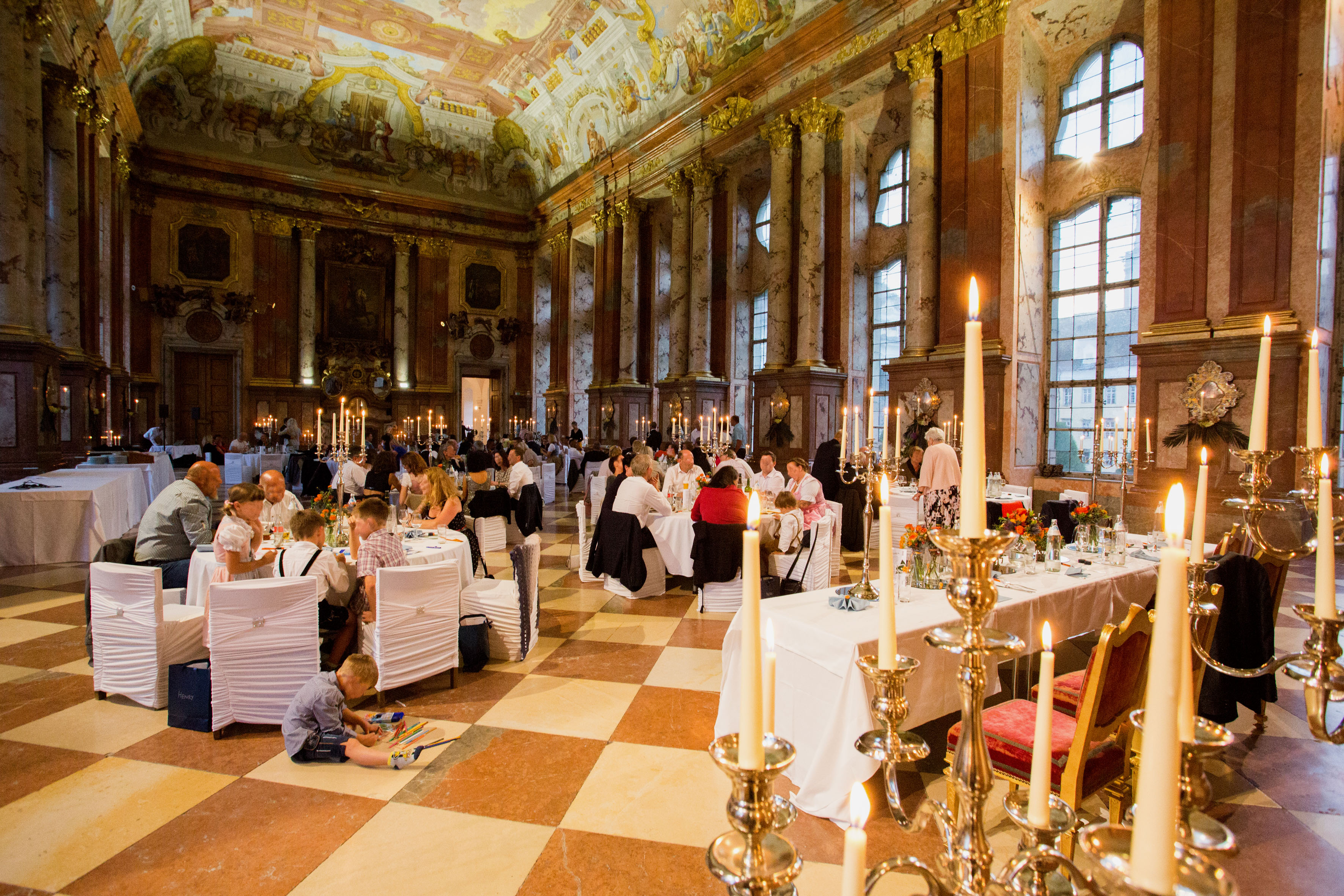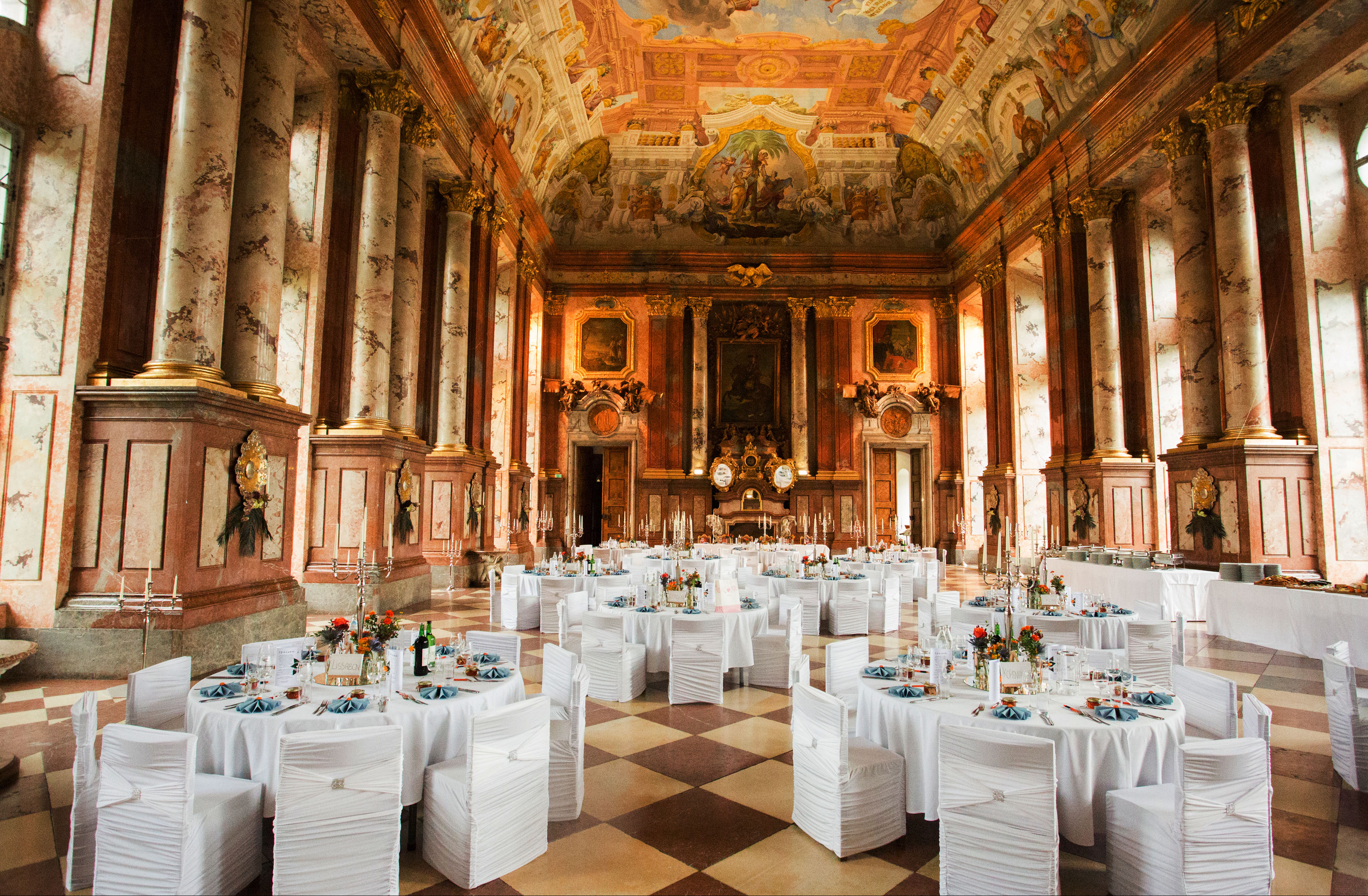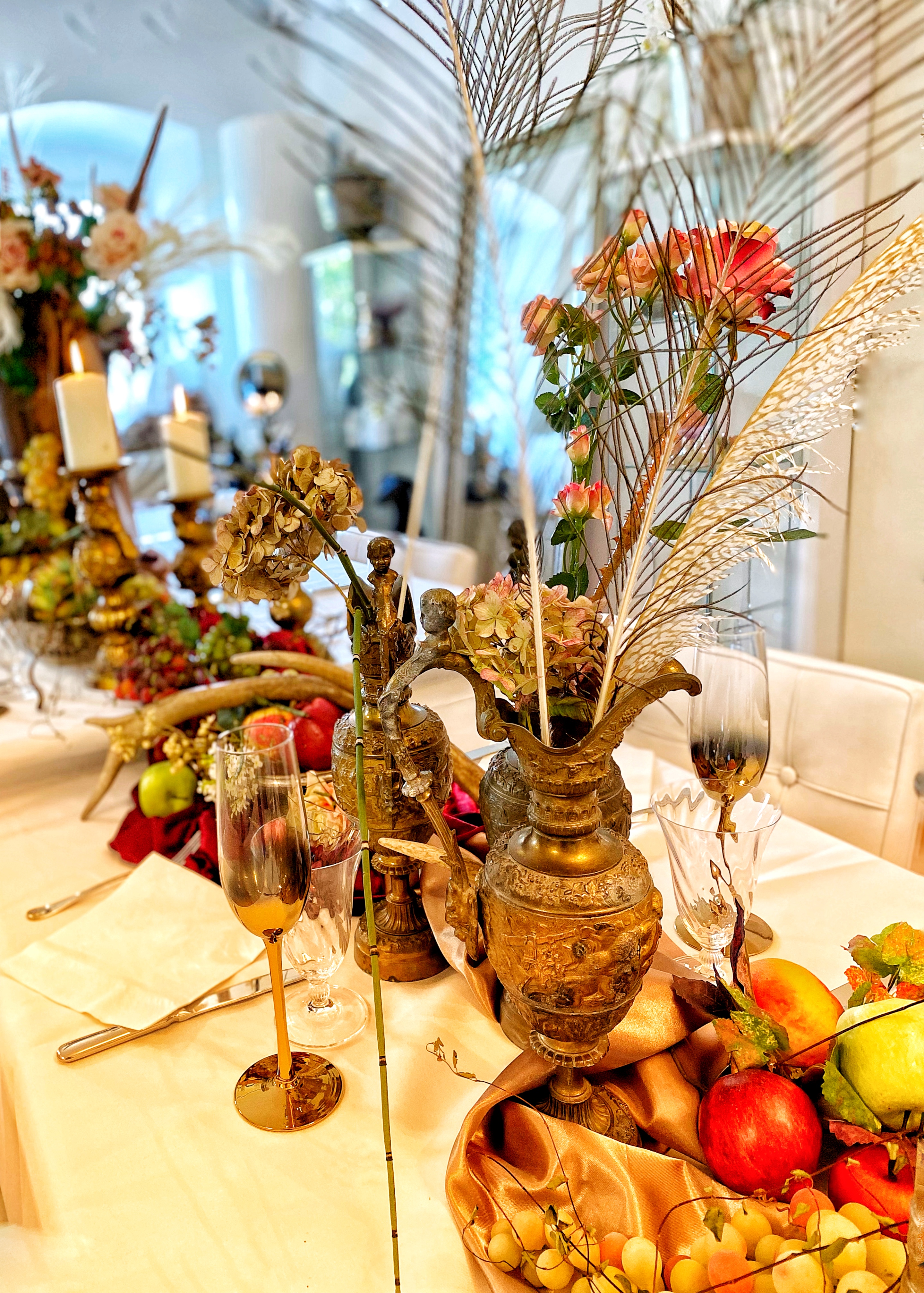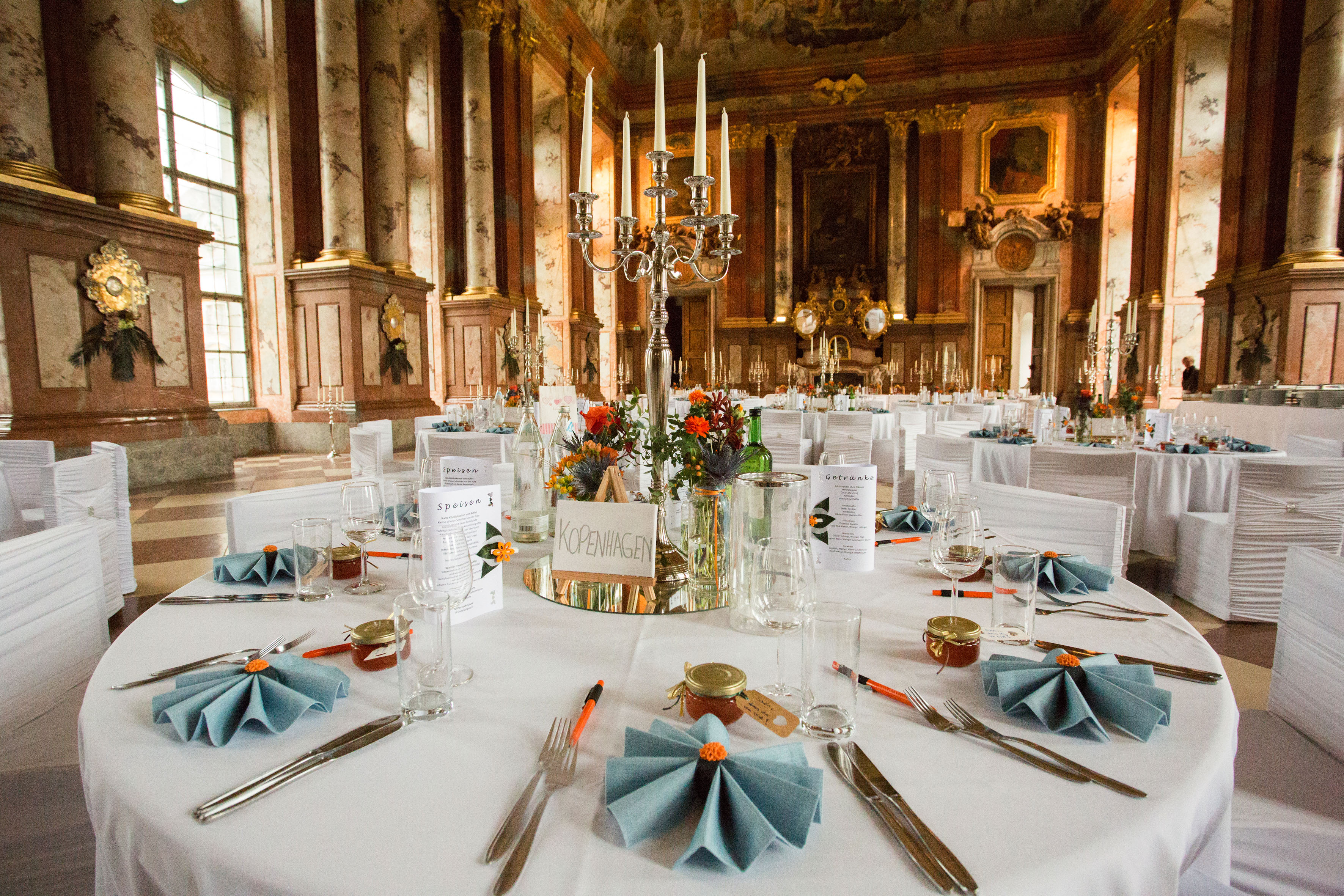 Stiftskirche St. Florian: „An Tagen wie diesen“, gespielt auf der Brucknerorgel, Hochzeitsfeier im Marmorsaal – es war das Fest unserer Liebe. Die Vorbereitungen dafür starteten bereits bei unserer standesamtlichen Trauung ein Jahr zuvor. Elemente wie Kirchenheft, Taschentücher, Seifenblasen, Menükarten oder Gastgeschenke hatten wir alles am Plan und zum Teil schon mit der Gestaltung begonnen. Dennoch entschlossen wir uns, einen Profi bzw. einen Deko-Verleih zuzuziehen, weil bei solch einer Location schnell mal ein Kerzenleuchter oder ein Blumenarrangement verloren wirken kann. Unsere Onlinerecherche brachte uns zu Gina Seemann. Schon bei unserem ersten Treffen waren wir überwältigt: Dekoelemente für alle Anlässe und alle Stilrichtungen – wir kamen aus dem Staunen gar nicht mehr raus. Hochwertigste Kunstblumen und Gräser aller Jahreszeiten, Kerzenleuchter von mini bis mannshoch, Vasen und Blumengefäße in allen möglichen Formen und Ausführungen, Etageren verschiedener Stilrichtungen, Spiegelelemente in unterschiedlichen Formen, aber auch Holzelemente, Geweihe … natürlich ebenso Stuhlhussen … Bänder und Schleifen in allen möglichen Farben und Größen… einfach UNGLAUBLICH. Wir waren fürs Erste mal überfordert. So fand die Besprechung hinsichtlich Raumstellung sowie die Bestellung der Blumenarrangements und des Brautstraußes mit Frau Seemann statt. Ihrer Liebe fürs Detail und ihrem Auge für das Schöne ist es zu verdanken, dass bei unserer Trauung auch die Liebe zu Pferden nicht zu übersehen war. Liebevoll dekorierte Hufeisen schmückten die Kirchenbänke und auf der Festtagstafel fanden sich stilvolle kleine goldene Pferdekutschen, die für die Echtblumenarrangements genutzt wurden. Auch der Weg von der Kirche zum Marmorsaal trug Frau Seemanns Handschrift … Kunstbuchsbäumchen, stilvolle Kerzenleuchter und beschriftete barocke Tafeln zeigten unseren Gästen den Weg … wir fühlten uns an diesem Tag wie Prinz und Prinzessin und auch unsere Gäste waren überwältigt und dankbar für die „Notfall-Picknickkörbe“ welche mit Flip-Flops, Haarbändern, Söckchen, Pflaster, etc. befüllt waren. Ein unvergessliches Fest, zu dem Frau Seemann mit ihrem enormen persönlichen Einsatz und ihrem Engagement viel beigetragen hat! Ihr stets offenes Ohr für Kundenwünsche, ihre freundliche Beratung, aber vor allem auch ihre Ausdauer zeichnen sie aus. Für all das an dieser Stelle nochmals ein herzliches DANKESCHÖN!